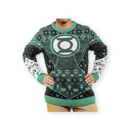 Combining the holiday fun with a superhero flair, this ugly sweater has the iconic Green Lantern logo on the front, perfect for fans who take pride in being a part of the fandom. Along with the logo, it also features some pleasant Christmas-themed designs that complement the sweater. Be it for the actual gift or a gift before the actual one, this is a great Christmas gift for women and men alike.